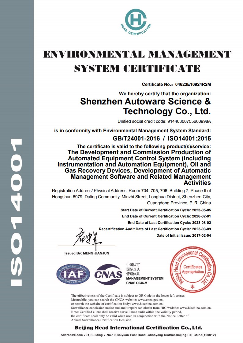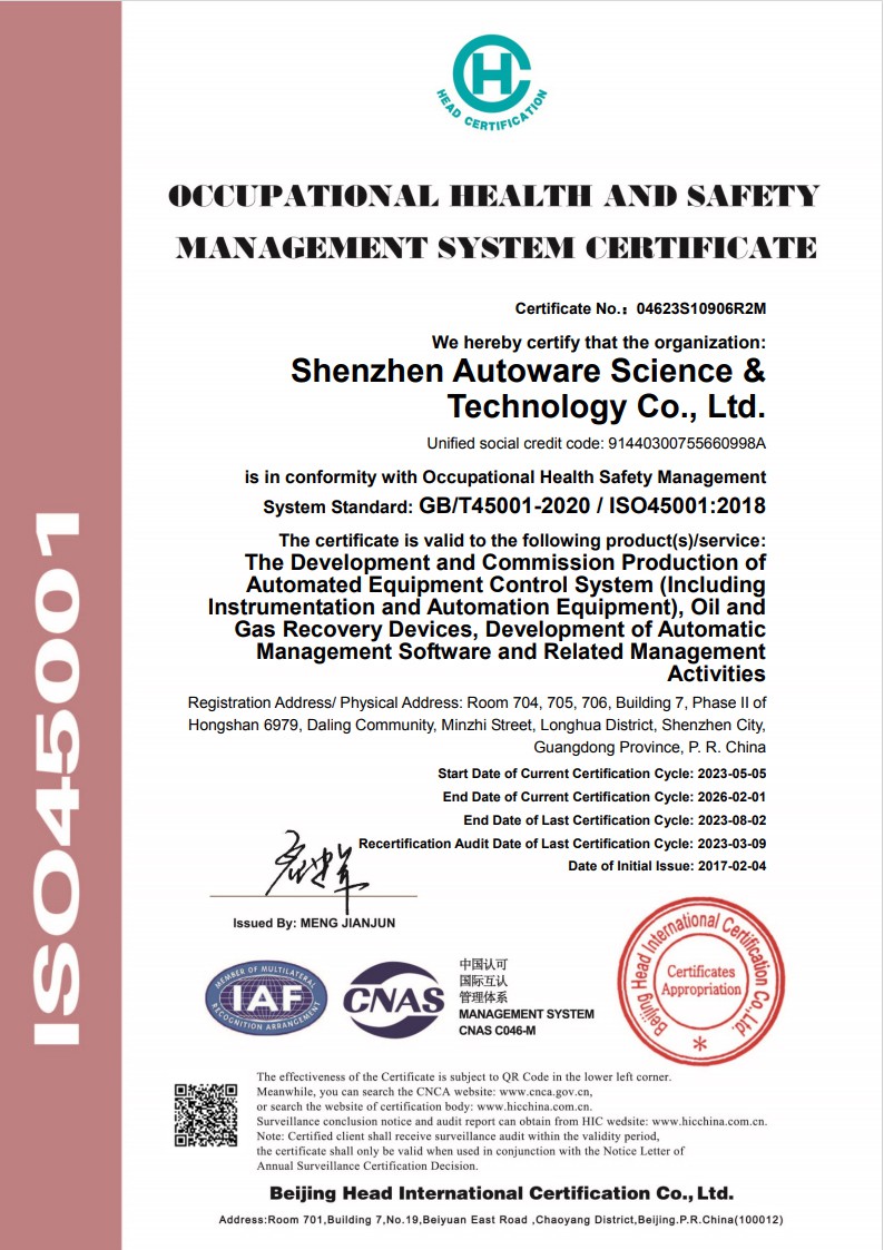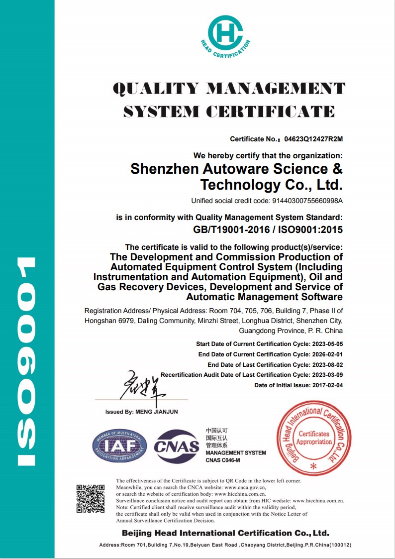 Shenzhen Autoware Science&Technology Co., Ltd. er en omfattende nasjonal høy-bedrift og har spesialisert seg på automatiseringsinstrumentering og ingeniørsystemer. Autoware registrert kapital på 31,55 millioner yuan, med hovedkontor i det vakre Longhua New District i Shenzhen, installert filialer i andre områder, er en nasjonal høy-bedrift. I 2007 investerte Autower i Hubei Hongyi Electronic Technology Co., Ltd. som en produksjonsbase i Yichang, Hubei. I juli 2008 ga autower ut nye produkter som lastearm, flytende plate, glidemontert osv., og la dem offisielt i salg. I 2012 besto autower Shenzhen programvarebedriftssertifisering og oppnådde programvareproduktregistreringssertifikatet, og oppnådde IS09001, 14001 og 28001-sertifisering. I 2013 oppnådde Hubei Hongyi Electronic Technology Co., Ltd. National Special Equipment Design License: Pressure Pipe GCII Design Document. Autower lanserte nye produkter for olje- og gassutvinning, LNG-slip og LNG-gassifiseringsski. I 2014 investerte autower i et metallverksted, startet forskning og utvikling av intelligent lagring og transport alt-i-ett kortsystem og utstyr for prosessering og gjenvinning av olje og gass, og solgte dem samme år. 2016-2025 autower fortsetter å utvikle seg.