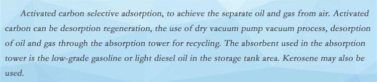 Selektiv adsorpsjon av aktivert karbon for å oppnå separat olje og gass fra luft.