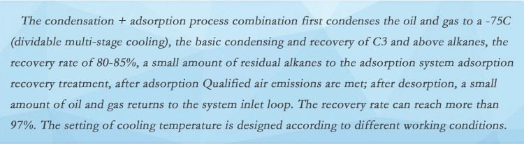 Gjenvinning av hydrokarboner inkludert metan og andre flyktige organiske forbindelser (VOC), naturgassvæsker (NGL), farlige luftforurensende stoffer (HAP), kan gi betydelige økonomiske besparelser og samtidig redusere utslippene med 95%. Store sugeskrubber skiller effektivt kondensat fra gassen og drenerer til avfall eller tilbake til tanken.